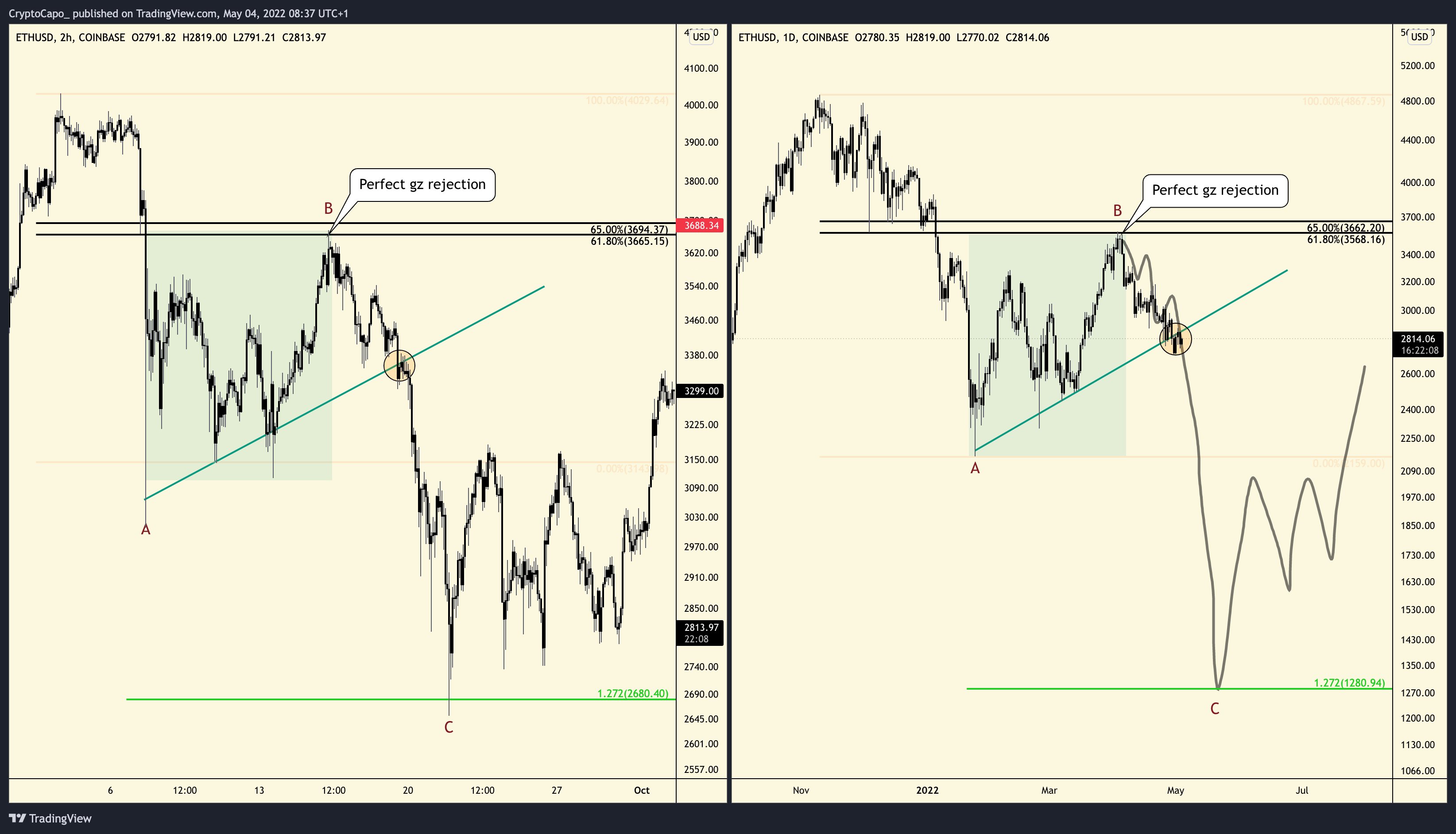 Capo also says that Ethereum, which is currently changing hands at $2,750.73 after losing 6.23% of its value in the last 24 hours, could also drop to as low as $1,100.